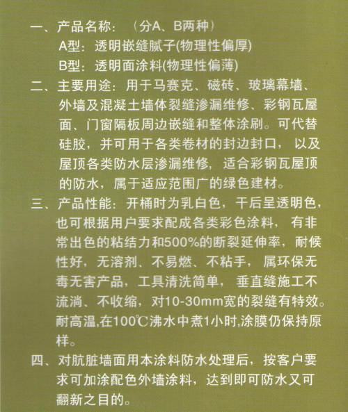 上海建筑防水材料(集團(tuán))防水工程有限公司生產(chǎn)的系列防水材料,作為系統(tǒng)的防水解決方案,成功應(yīng)用于包括房屋建筑、地鐵隧道、國(guó)際機(jī)場(chǎng)、廠礦設(shè)施、水利設(shè)施等眾多領(lǐng)域的重大基礎(chǔ)建設(shè)項(xiàng)目中,公司與時(shí)俱進(jìn),積極創(chuàng)新,大力發(fā)展新型防水材料,為滿(mǎn)足不同客戶(hù)的需求而奠定了堅(jiān)實(shí)的基礎(chǔ)。