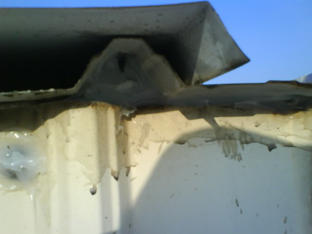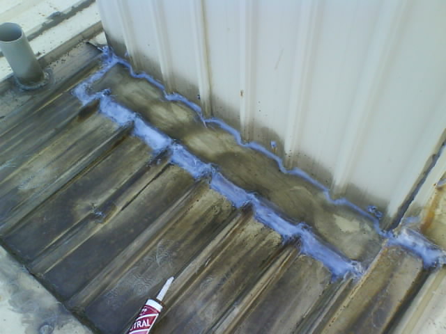 高雄抓漏-鐵皮屋漏水修繕 在積水的部位做上三度防水層,讓積水的位置可以裝水而不會(huì)滲漏水,釘頭和烤漆浪板搭接縫也可能是漏水的因素.用速利康(填縫材)全部補(bǔ)修.風(fēng)也是影響漏水的原因,可將雨水以不同的角度吹入縫隙,而造成漏水.