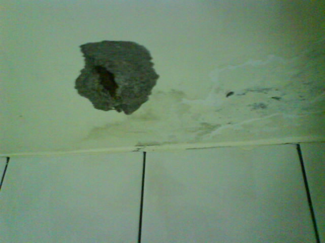 屋頂防水抓漏-民宅油漆修繕 上圖可以看出天花板滲水已有一段時(shí)間,掉落的水泥漆粉末實(shí)在讓人很頭痛,看起來(lái)又很難看,又影響呼吸道的健康.若只是施作油漆補(bǔ)修也是無(wú)效,要從根本治療才無(wú)后顧之憂